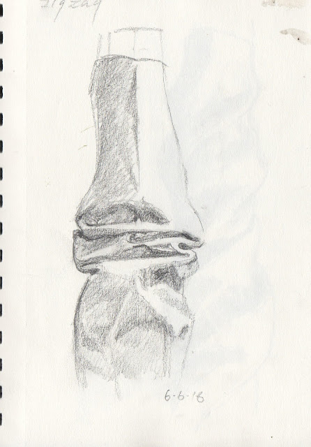 Like most, a great deal of my work once was still life. A still life is simply a drawing or other image of a group of inanimate objects. It doesn't matter if they once were animate; they are not at the moment they're caught in the image. Certain paintings that do contain an animate object are also considered still life--an example is the Spanish bodegon or kitchen painting, that often has a figure or two. But usually when we think of still life we think of the inanimate.